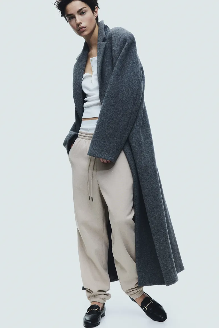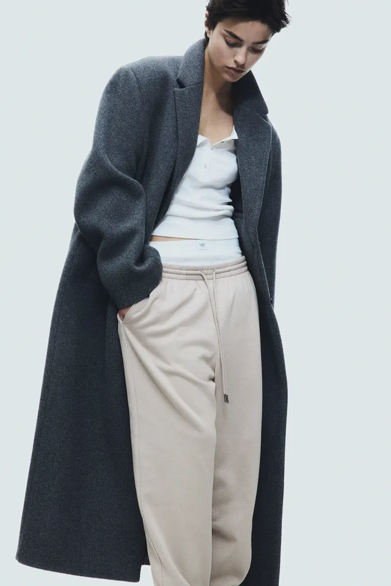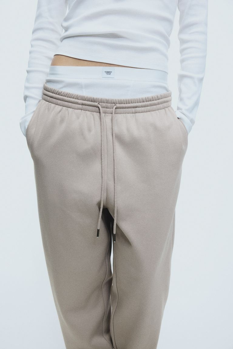 ②High waist with covered elastication and a drawstring, side pockets, and covered elastication at the hems. Soft brushed inside.