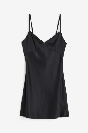 Calf-length, fitted dress in a rib knit with a wide neckline at the front and a deep cut at the back. Long, gently flared sleeves and a slit at the front of the hem.