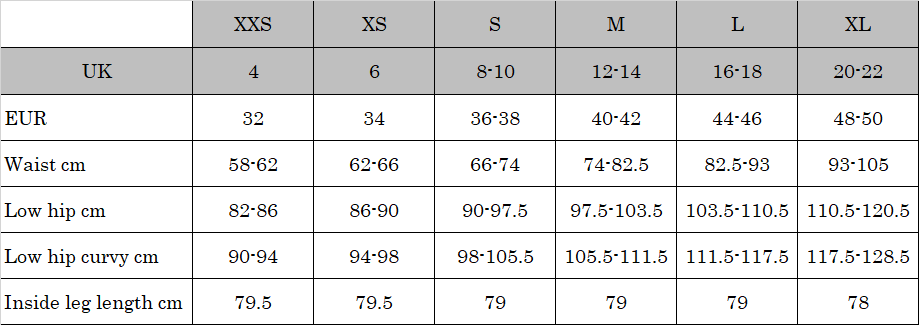 Inside leg: Length: 76.5 cm (Size M)